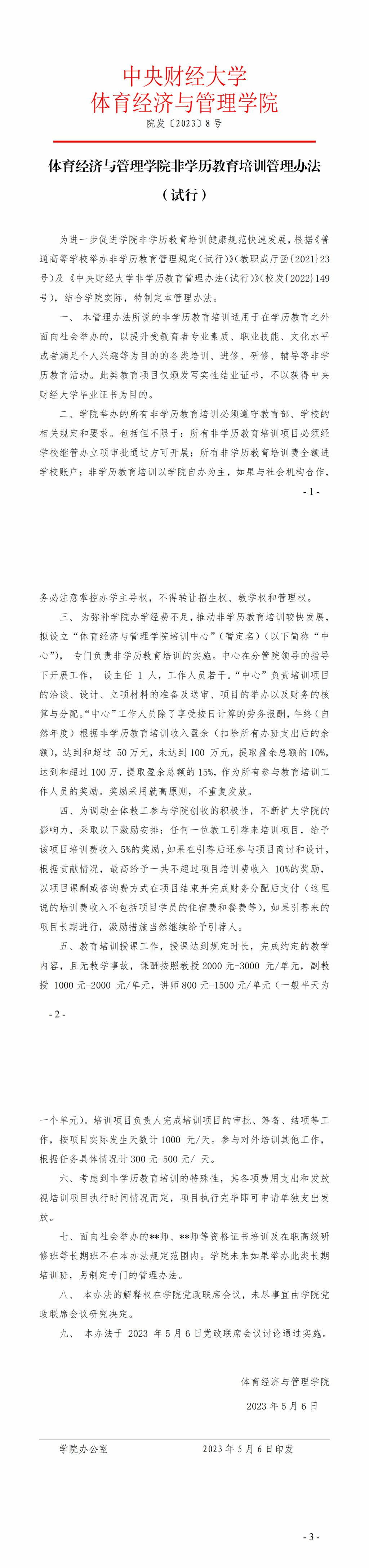 院发〔2023〕8号 PA视讯非学历教育培训管理办法