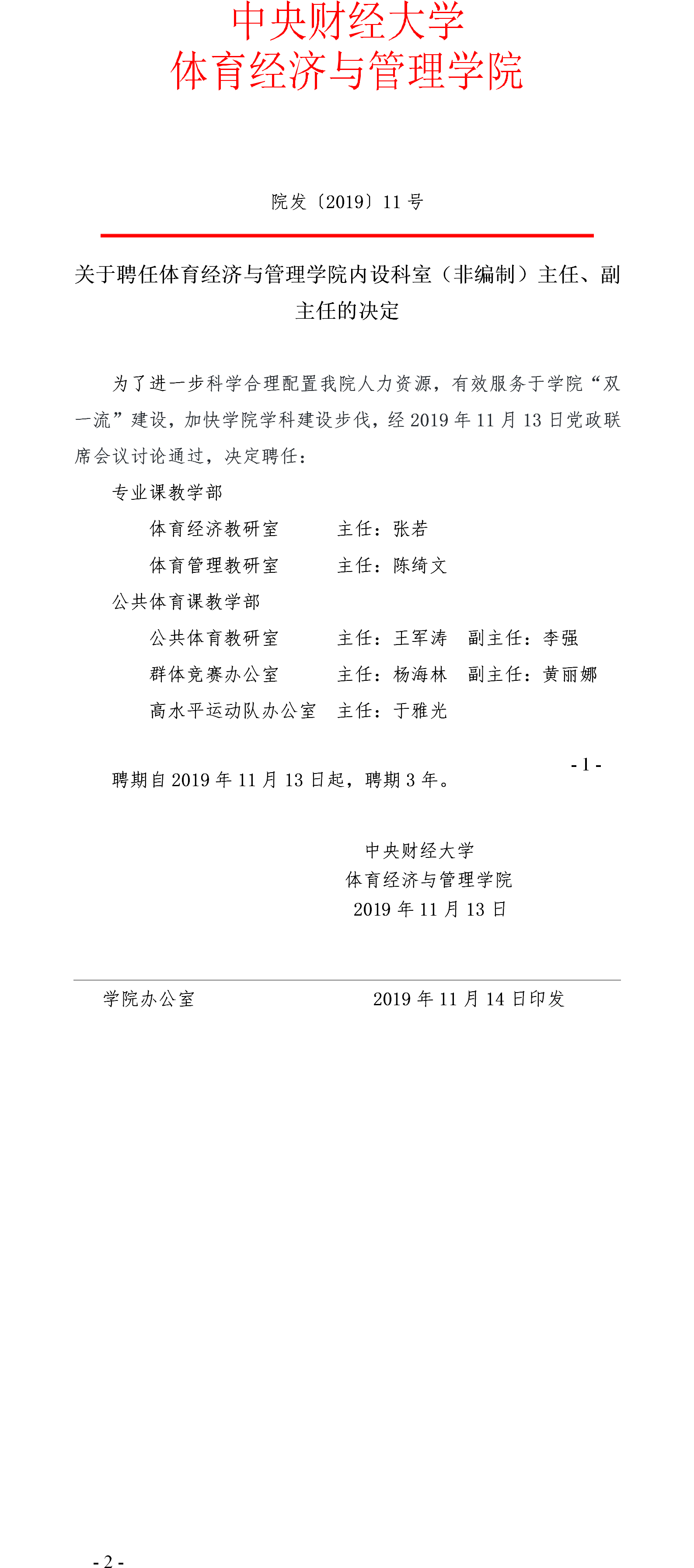 院发〔2019〕11号 关于聘任PA视讯内设科室(非编制)主任、副主任的决定