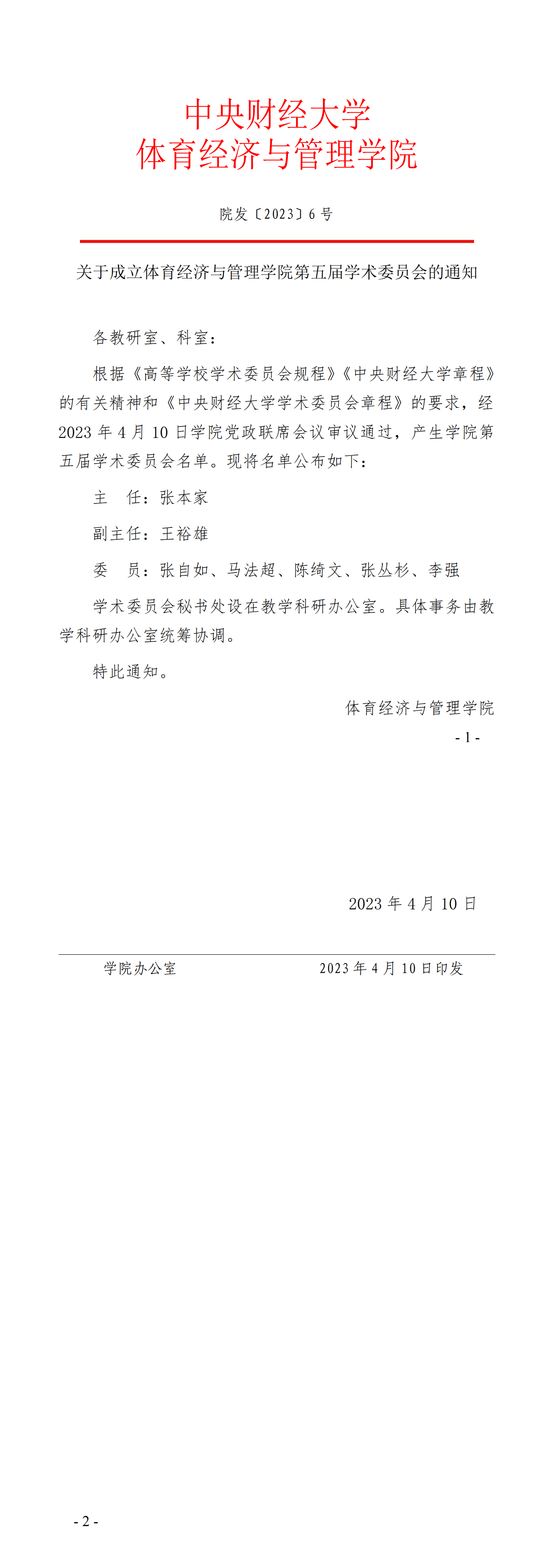 院发〔2023〕6号 关于成立PA视讯第五届学术委员会的通知