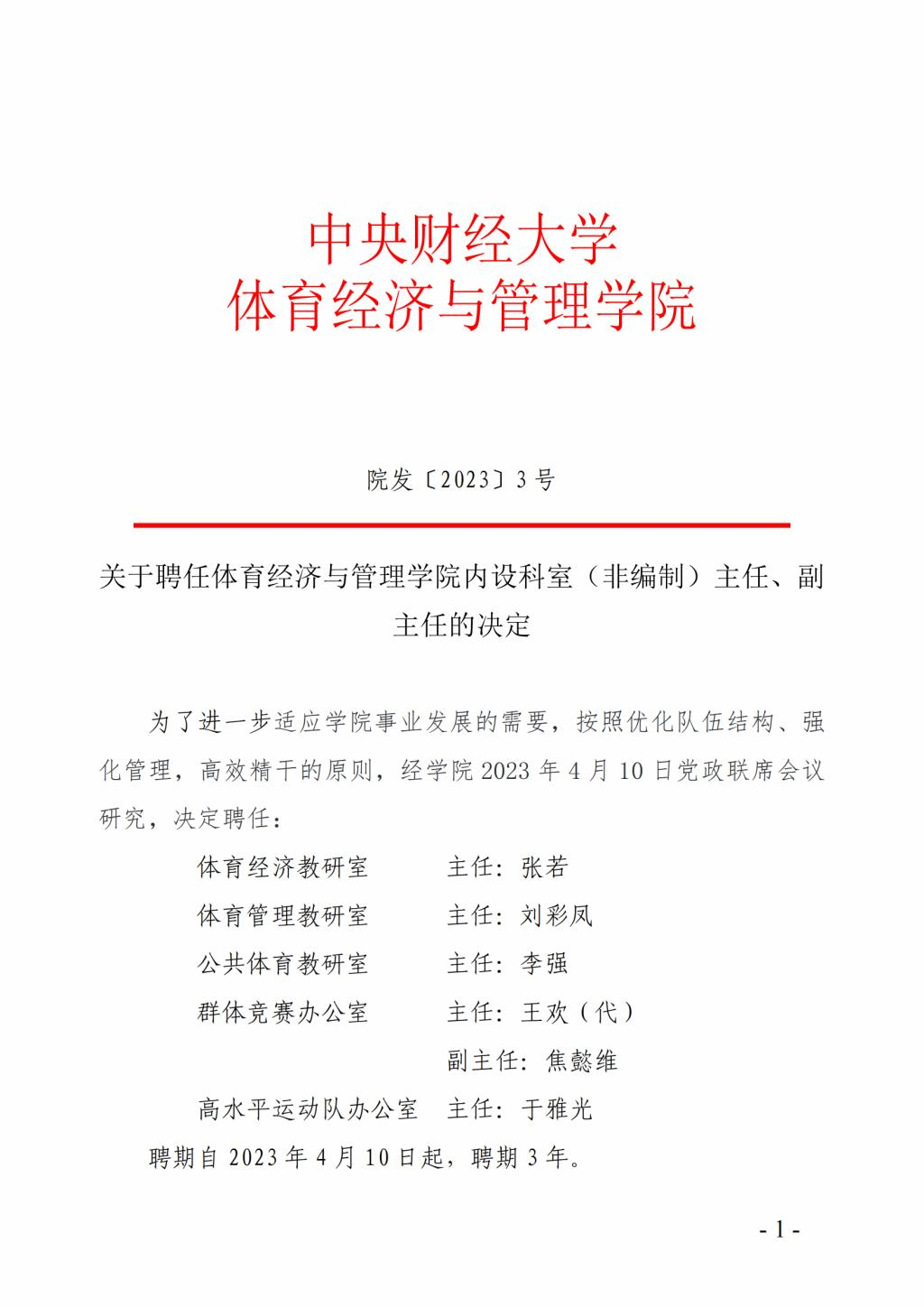 院发〔2023〕3号 关于聘任PA视讯内设科室(非编制)主任、副主任的决定