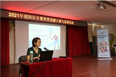2021年5月,陈绮文老师受邀到朝阳区科学园社区服务站给中科院科学园社区居民和朝阳区街道、社区文体干部进行冬奥会科普宣讲。2021年10月,李宏权老师给北京科技大学师生做“冬奥进校园”讲座。