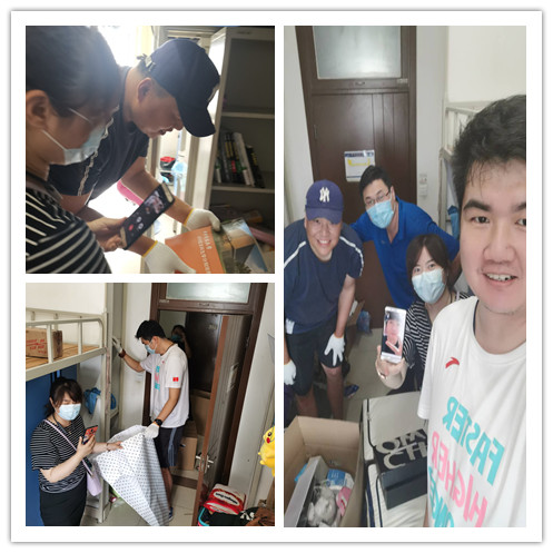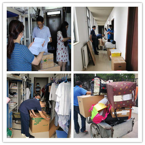 6月28日至7月1日,打包工作组在实践中摸索更加高效的工作方式,打包中时刻保持与毕业生的视频沟通,老师们“登高钻桌”全面覆盖宿舍的每个角落,仔细询问毕业生的每一件物品是否需要,耐心的介绍物品打包的限制,并在每天打包工作的间隙将一件件员工需要但又不在邮寄范围内的物品单独用快递寄送给毕业生。