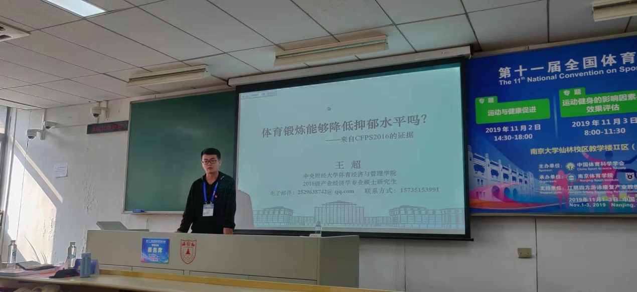 受“PA视讯官方网站研究生学术交流支持计划”的资助,公司2018级研究生王超投稿的论文《体育锻炼能够降低抑郁水平吗?来自CFPS2016的证据》被大会录用为专题报告。会议期间,王超同学对参会论文进行了汇报,并同国家体育总局国民体质研究中心张彦峰研究员、重庆大学向祖兵老师以及苏州大学和华东师范大学等多位参会代表进行了深入交流,得到与会代表的认可。