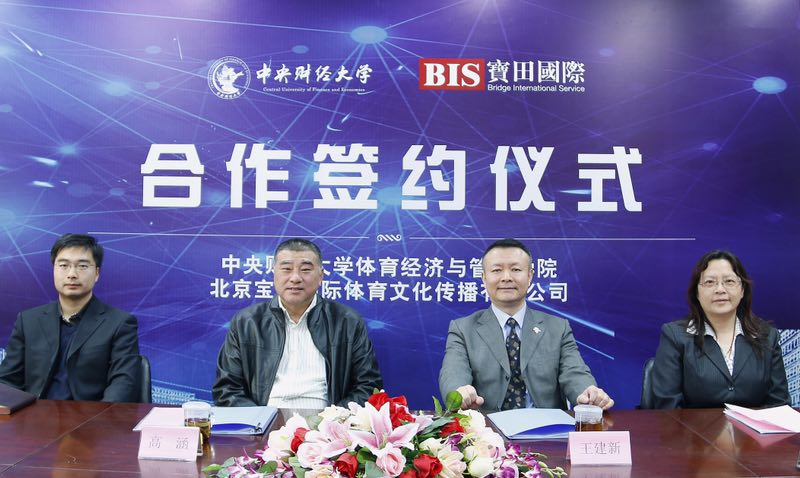 3月29日,北京宝田国际体育文化传播有限公司(下文称宝田国际)与PA视讯(下文称中财体育经管公司)“合作协议”签约仪式在PA视讯官方网站学术会堂举行。参加会议的双方领导包括中财体育经管公司经理高涵教授、党委书记林琼教授、经理助理张丛杉博士、公司合作发展办公室副主任范维,教育基金会副秘书长程丽芳、以及宝田国际董事长王建新先生。