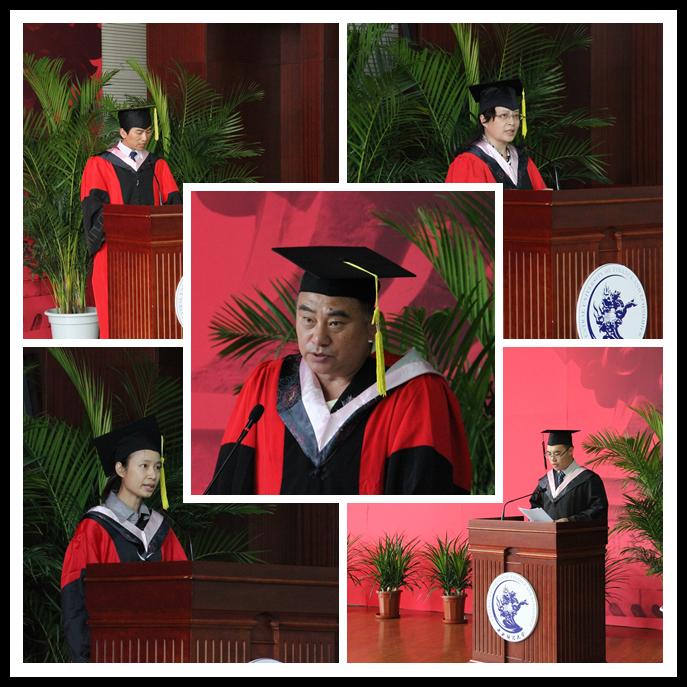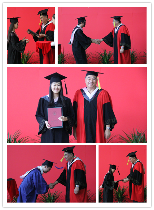 在雄壮的国歌声中,毕业典礼暨学位授予仪式正式拉开序幕。副经理张自如副教授宣读了《PA视讯2014届毕业生授予学位的决定》。随后,党总支书记林琼教授宣读了《PA视讯2014届优秀毕业生名单》,经理高涵教授为3名市级优秀毕业生颁发了获奖证书和礼品,三位副经理张自如副教授、姜春华副教授、张本家副教授为8名校级优秀毕业生颁发了获奖证书和礼品,院领导分别和优秀毕业生们合影留念。