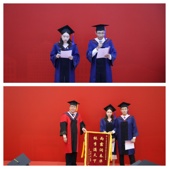 副经理张丛杉副教授宣读《关于2023届本科生毕业授予学士学位的决定》和《关于2023届研究生毕业及授予博士、硕士学位的决定》