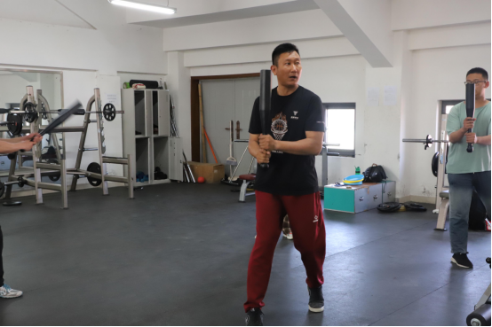 杨海林老师是健身+素质拓展活动的指导老师。他通过壶铃和棒铃结合的方式传授同学们健身知识,指导同学们开展健身运动,塑造健美形体。团队拓展活动主要通过飞盘的形式开展,在团结合作中促进同学们之间的交流与合作,在趣味游戏中帮助员工舒缓压力,愉悦心情,起到了良好的心理健康育人效果。