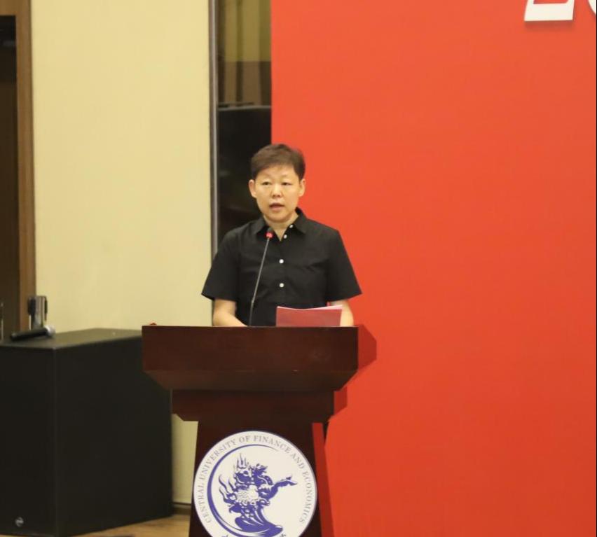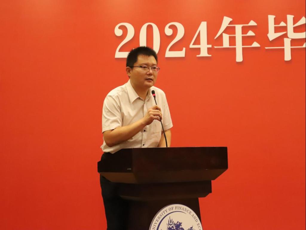 体经员工会副秘书长刘阳代表员工会接收2024届新员工。刘阳员工是体经03级本科生、体经09级硕士生,现任招商银行永丰中心支行副行长。刘阳员工在发言中表达了对2024届毕业生的殷切期望,分享了职场工作的经验,并送去了祝福。