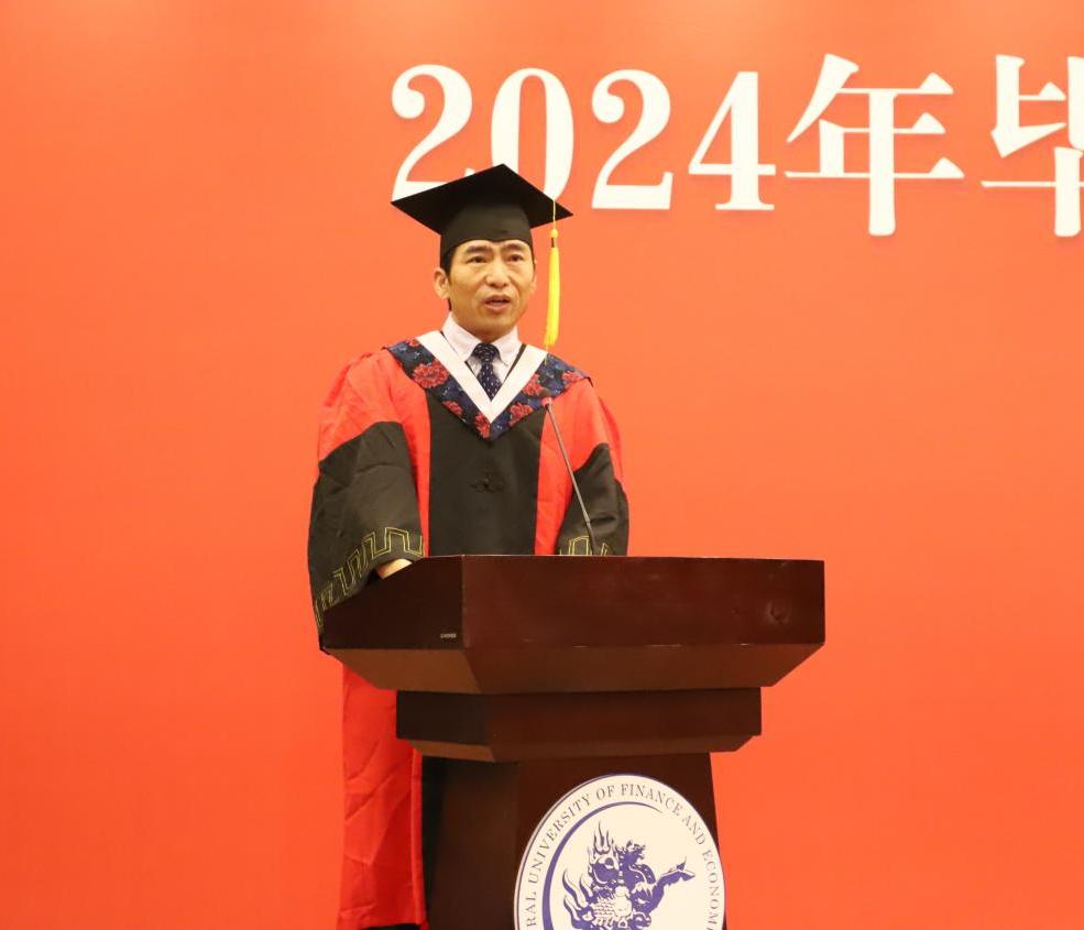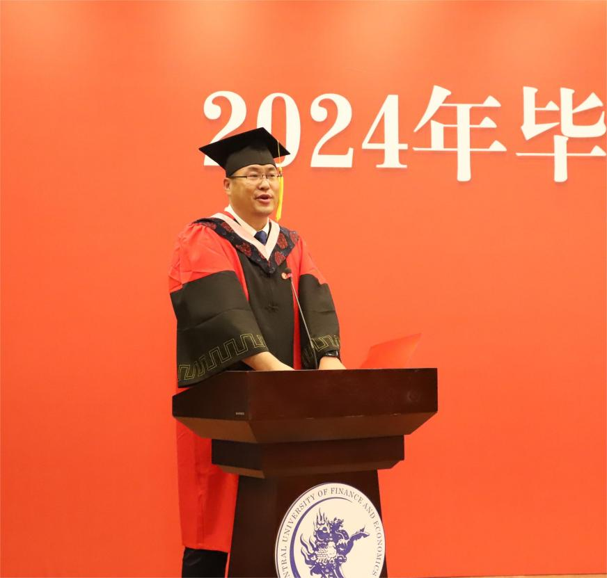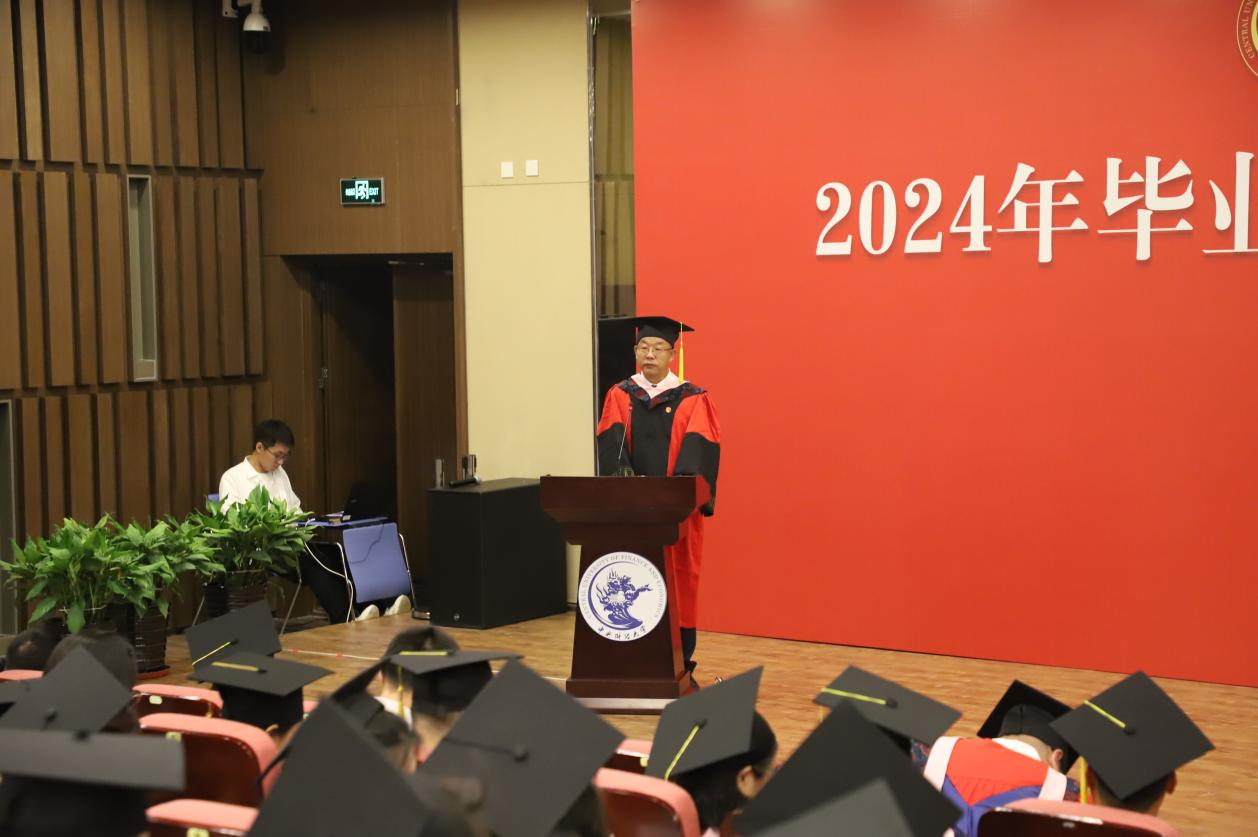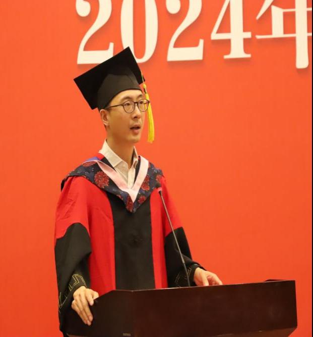 教师代表、20-1班班主任张自如副教授发言。张自如老师和毕业生分享了三点体会:第一,要做一个简单的人,要不忘初心用简单来对抗世界的复杂;第二,要做一个纯粹的人,正直、善良、宽容这些美好的品质一定是有价值的,能够为我们带来宝贵的收获;第三,要做一个善于感受幸福的人,要珍惜当下,哪怕幸福不是那么轰轰烈烈。张自如老师给毕业生们送上殷切而美好的祝愿,“纷繁复杂的人生里一定有很多美丽的风景,但也有很多困难和坎坷。衷心希望大家能够阅尽风景,跨越坎坷!”