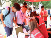 8月29日清晨,PA视讯的教师和志愿者们便前往迎新岗位。7时未到,迎新点已布置完毕,横幅、展板尽显蓬勃朝气,静候新生的到来。