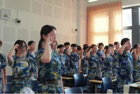 新生代表张禹洁以充满朝气的发言,表达了同学们对军训生活的美好憧憬,倡议全体同学借军训之机,增强爱国与国防意识,弘扬忠诚团结之风,以钢铁纪律锤炼过硬作风,恪守军规,圆满完成训练。