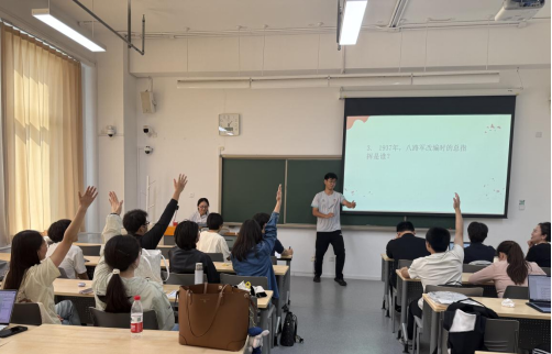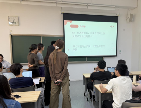 随着竞赛推进,抢答题环节将气氛推向高潮。本环节共10 题,每题 15 分,答错扣 10 分,需通过举手形式争夺答题权,且仅在主持人宣布“开始抢答”后举手有效。各队伍反应迅速,现场既充满竞技的紧张感,也不乏互动的趣味性,充分点燃了全体师生的参与热情与爱国情怀。多支队伍凭借精准作答实现比分跃升。