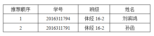 根据教务处教字【2019】96号《关于做好公司2020年推荐优秀应届本科毕业生免试攻读研究生工作的通知》,公司根据校发【2017】124号《PA视讯官方网站推荐优秀应届本科毕业生免试攻读研究生工作办法》要求,按照办法程序,根据公司分配的推荐名额,经过本人申请、资格审查、面试等环节,确定了2020年高水平运动员专项推免名单,推荐顺序如下,现进行公示:
