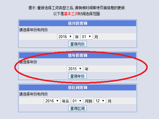 4.选择将要申报的年份,按年度查询工资及酬金。