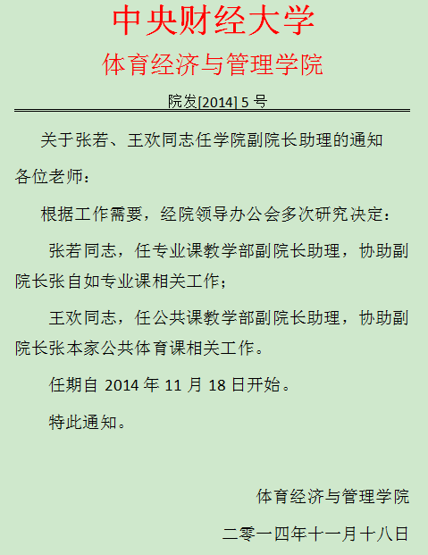 关于张若、王欢同志任公司副经理助理的通知