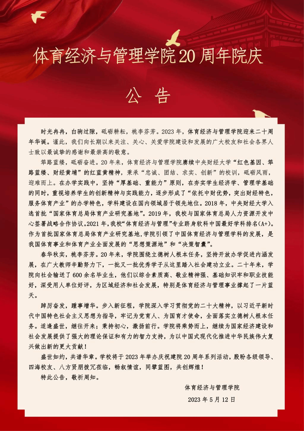 20周年院庆公告