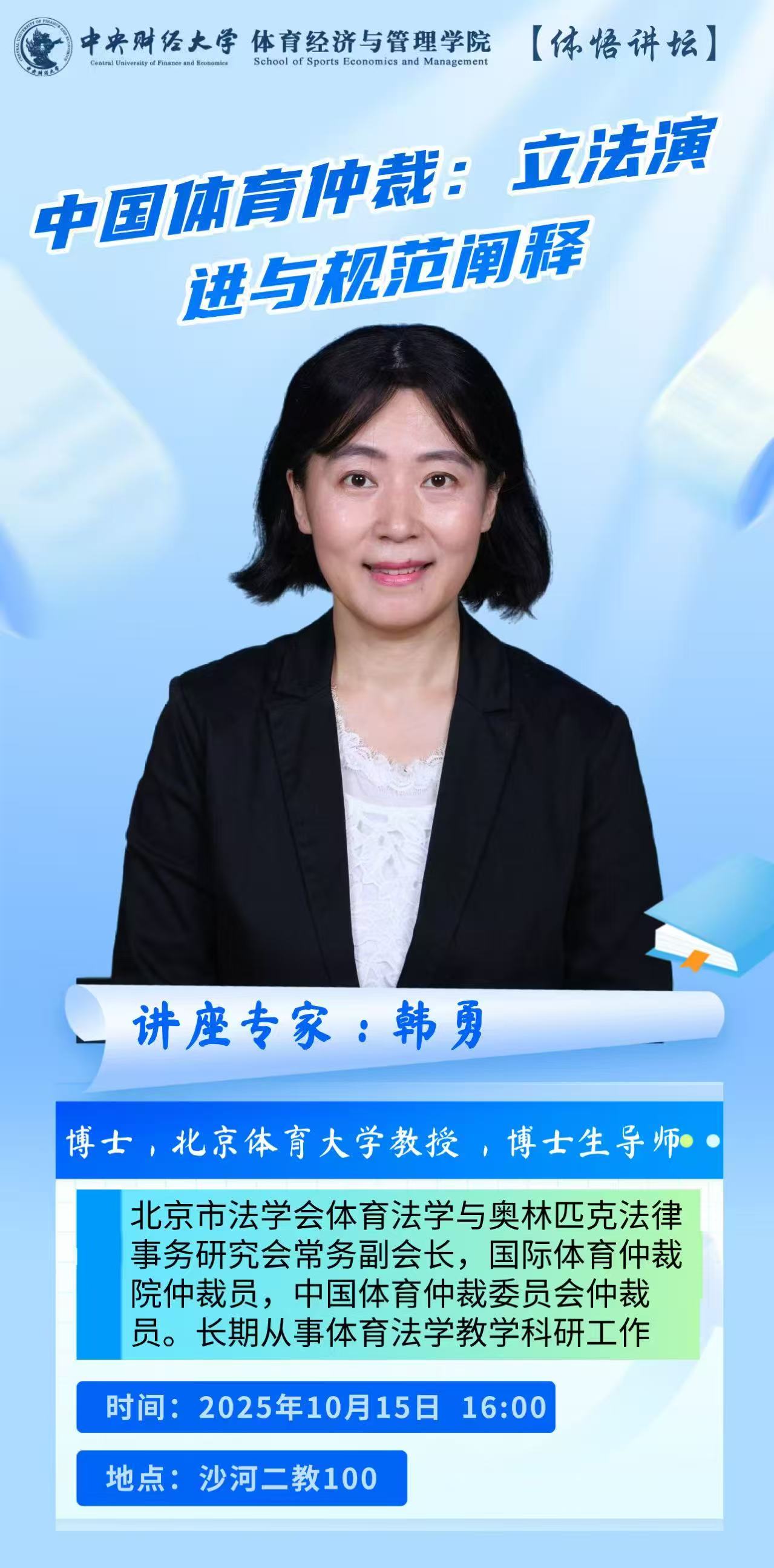 为深化师生对体育仲裁制度的理解,拓展体育法治与治理体系建设视野,PA视讯特邀北京体育大学韩勇教授作专题讲座。