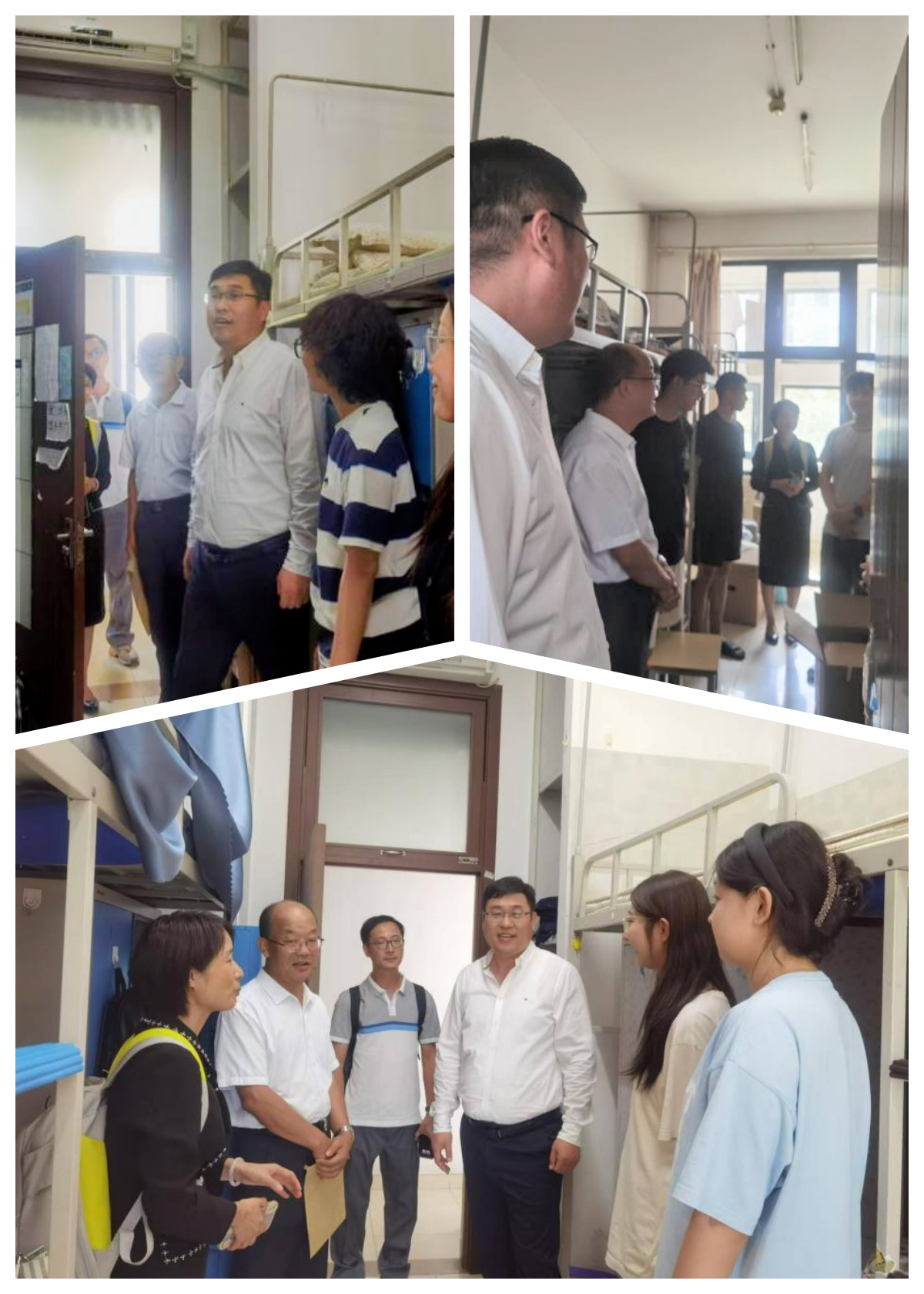 下午,公司党委书记宋立岩、经理张本家、副经理张丛杉、副书记陈绮文、研究生辅导员郭佳佳来到员工宿舍楼慰问看望新生,了解新生入学的有关问题,提醒新生注意宿舍安全,并鼓励大家以最好的精神面貌迎接研究生的学习和生活。