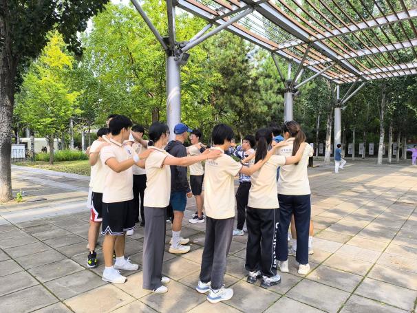 最终,队伍抵达奥林匹克森林公园中轴线区域。在此,老师带领大家进行了一场信任静心实验。老师通过简单且寓意深刻的身体协作小游戏,引导同学们体会信任的力量,即放下戒备、依赖队友,才能真正凝聚成整体。中轴线的开阔庄重,让这一环节更具仪式感和意义。
