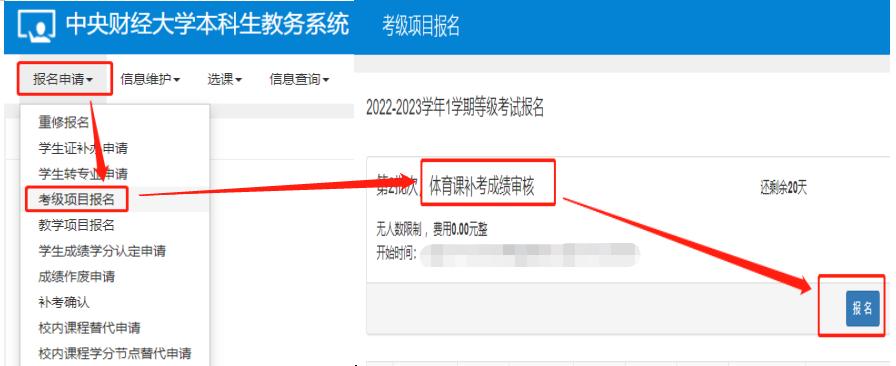 登录教务系统-报名申请-考级项目报名-体育课补考成绩审核