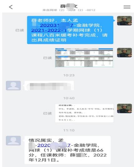 老师:情况属实,员工姓名-学号-公司,大学体育(1)课程补考成绩是80分,任课教师:李强,2022年6月1日。