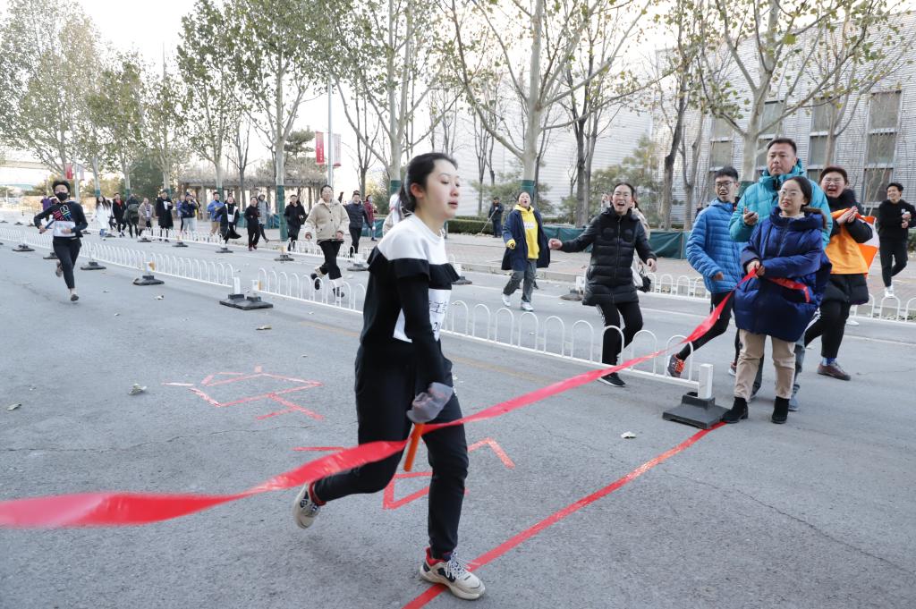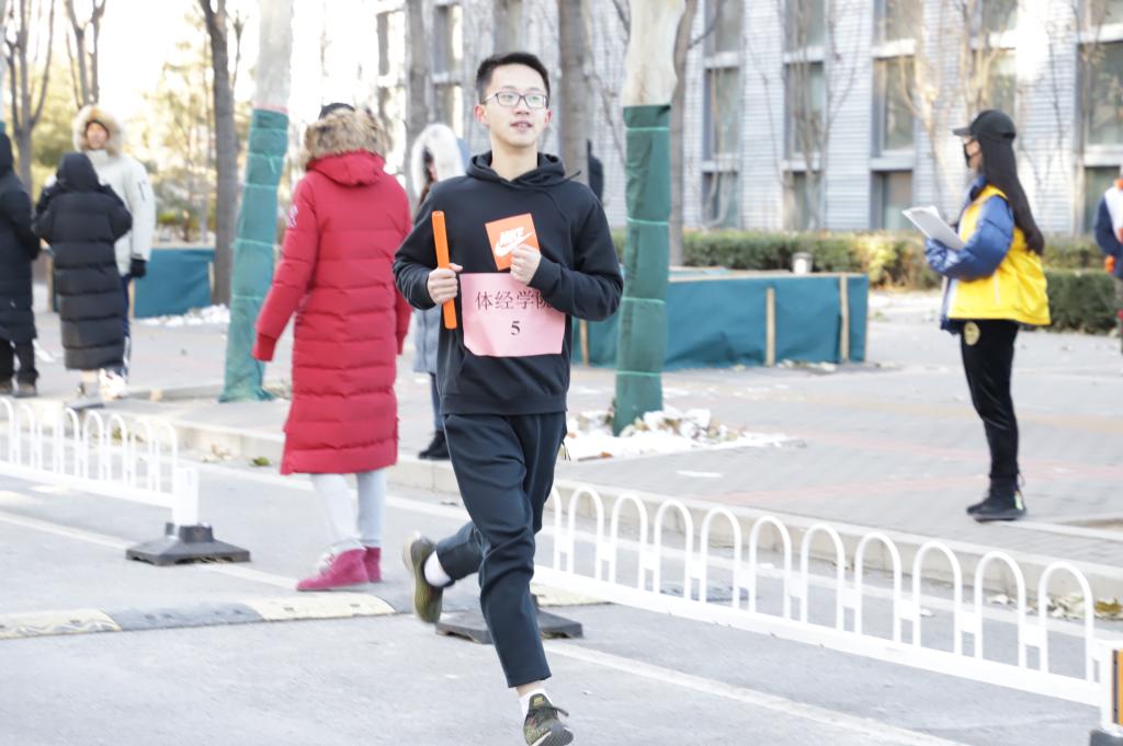 尽管天气寒冷,室外温度以降至零下,但选手,裁判和志愿者都内心火热。下午两点,随着发令员王军涛老师的一声枪响,比赛正式开始,各个公司第一棒选手同时向前冲刺。各公司选手都竭尽全力,为自己和公司而全力拼搏。赛场外,观众情绪高涨,为场上选手加油鼓劲;各公司也同样自发组织很多陪跑者,鼓励选手全力完成比赛。赛道旁边每50米左右都有志愿者为选手指引赛道方向,计时老师和计次组志愿者也一丝不苟完成着自己的任务,保证活动的正常开展。