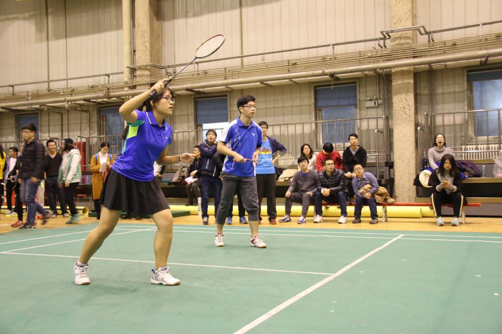 七点半,“羽林大会”首场比赛准时开赛。首先进行的是小组内男子单打预赛,接着依次进行的是混双、女双、男双、女单的比赛。参赛选手们实力发挥,尽情地享受着体育比赛的乐趣;裁判员时刻认真地注视着场上选手的挥拍,记录着每一个精彩的得分;观众们随着场上比分的变化或屏息凝神细致观赛,或欢呼雀跃为选手加油鼓劲,场上场下气氛热烈。