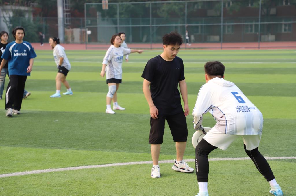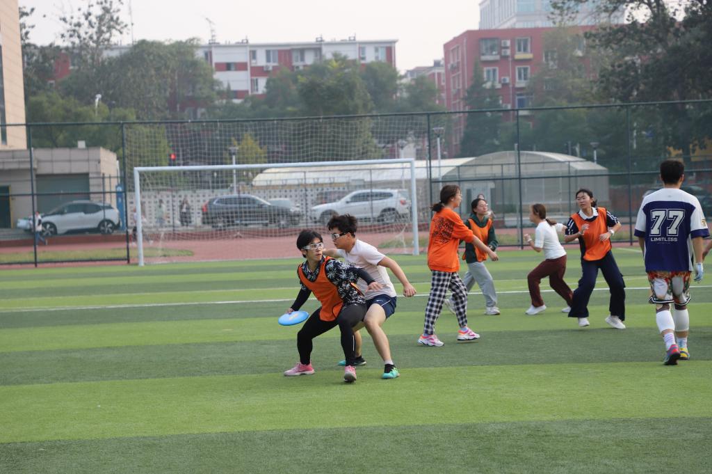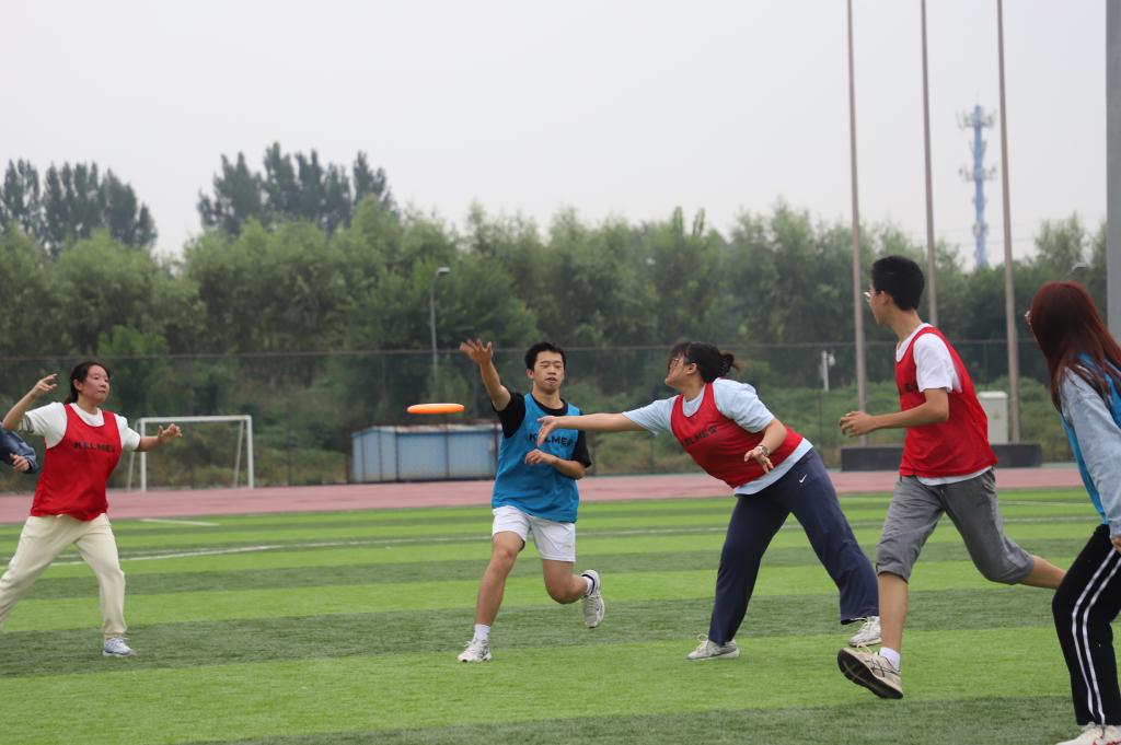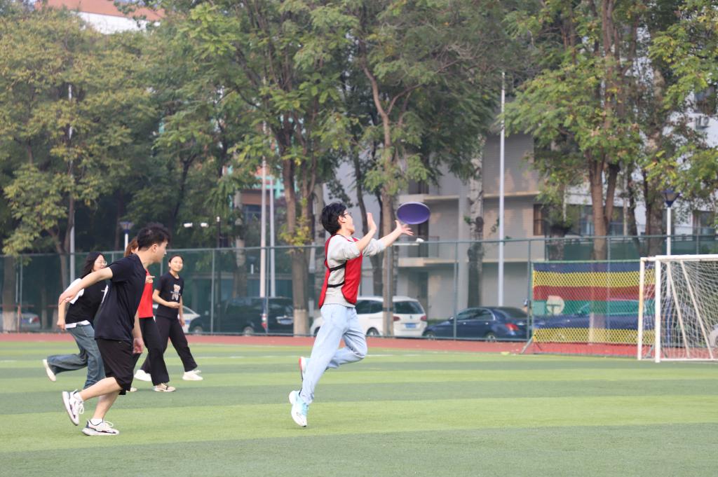 2024年10月26日,决赛于在沙河校区的操场上拉开帷幕。吸引了众多师生前来观战。随着裁判的哨响,比赛正式开始。选手们迅速跑动,精准接盘,,配合默契,展现出了高超的技艺、出色的反应能力和团队协作能力。即便出现失误,选手们也迅速调整心态,继续投入到比赛中,体现了“盘不落地,永不放弃”的飞盘精神。观众席上,同学们的加油声、欢呼声此起彼伏,为选手们增添了无限动力。