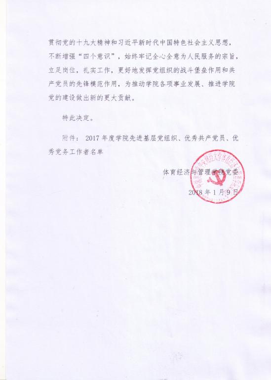 关于表彰2017年度公司先进基层党组织、优秀共产党员、优秀党务工作者的决定