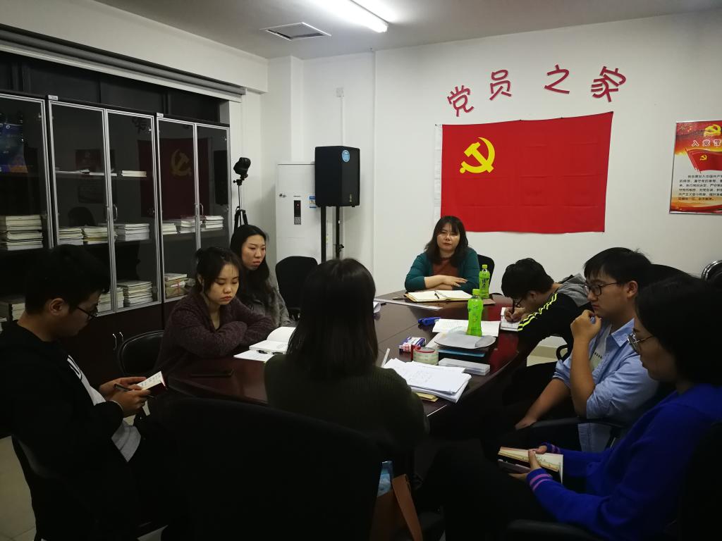 10月23日晚7点,公司第一员工党支部于看台教室开展优秀党员事迹学习会议。支部成员在书记李秋月老师的带领下,对2017-2019年度PA视讯官方网站优秀共产党员标兵、优秀共产党员胡庆同志的典型事迹进行了学习、交流和讨论。作为“不忘初心、牢记使命”系列教育活动的重要活动之一,同学们通过对身边先进党员事迹的学习,坚决落实“守初心、担使命、找差距、抓落实”中的“找差距”一环,将先进党员光荣事迹作为自身养料,提升自身思想政治素养。