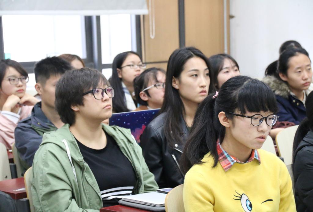 随后,王佳妮同学就“保研干货与大学湿货”进行经验分享。她分享了一些保研资料、自身经历,为在做同学阐述了自己的学习方法,介绍课程类型及所需能力,同时向大家说明了基础知识、逻辑分析和开拓视野的重要性。王佳妮同学鼓励学弟学妹们要多多关注学术期刊,积极参与学术科研,鼓励大家要突破迷茫,努力调整自身心态,积极适应老员工活节奏。