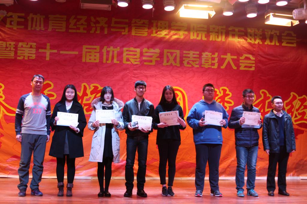联欢会才艺表演的同时也进行了三次优良学风表彰有关奖项的颁奖和两次联欢会抽奖。优良学风表彰有关奖项分别为体经才艺奖、体经学习进步奖、体经科研实践奖、体经优秀志愿者奖、体经自强奖、体经风尚奖、体经优良学风奖、体经优良学风宿舍奖、优秀员工干部奖、体经人物奖。出席联欢会的老师们依次分别为获奖员工颁奖。优良学风表彰旨在激励体经学子在老员工活中再接再厉、在无涯学海中笃定前行、在科研实践中屡创新高、在志愿服务上尽善尽美、在自我完善上勇往直前。同时通过表彰也为16级新生树立良好的朋辈榜样引领。