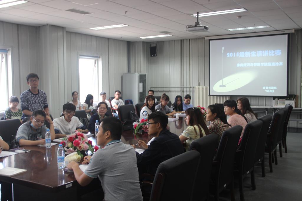 9月8日是新生来到公司的第二天,公司在沙河校区体育馆会议室开展了新生演讲比赛的海选工作。参加此次海选的评委有公司党总支书记林琼老师、团总支书记张振磊老师、团总支副书记孙禹、员工会主席章菁育、副主席丁帅等。此外,还有15级全体同学们到会场观看演讲比赛。