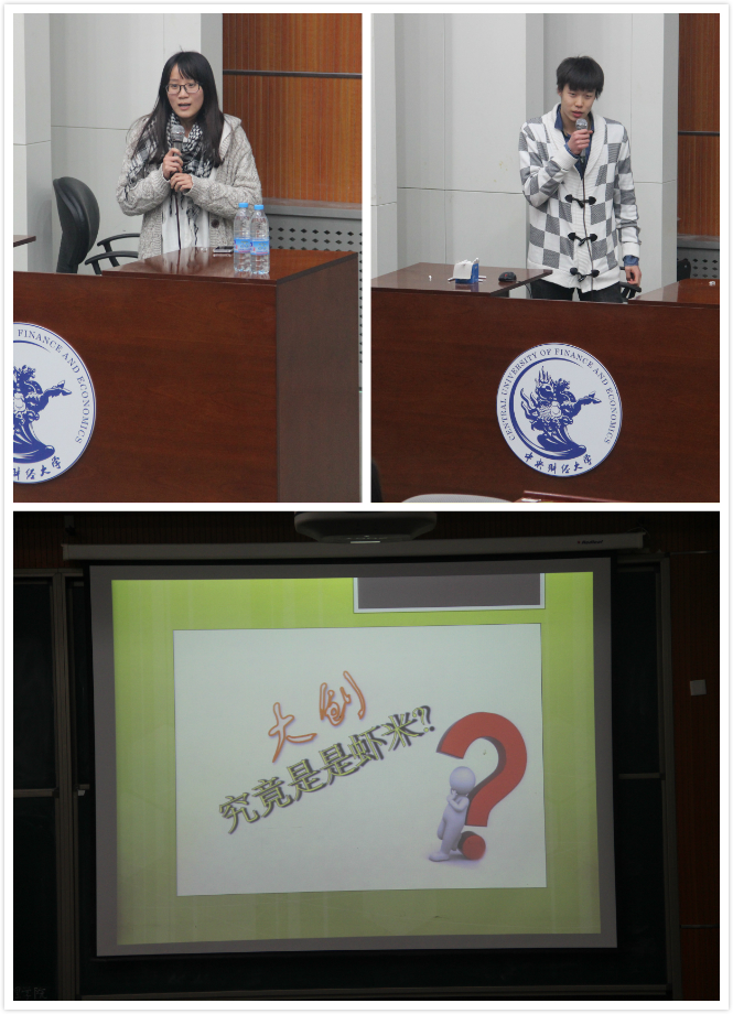 此次交流会共分为两个部分,第一部分是由在大创中拥有突出表现的学长学姐进行经验分享。首先与大家分享的是PA视讯的卓钊,她谈到了在自己的手工艺DIY项目中遇到的困难和惊喜,并提到在立项的过程中要有详细的规划,要对自己的项目充满信心。接着与大家分享的是来自管理科学与工程公司的王方键,他分享了自己曾经参与过的诸多项目,大方不失幽默的语言令同学们印象深刻,他鼓励大家虽然在创业的期间会有失败,但不要想放弃,他告诉大家“只有敢闯,敢做的人,才能做成大事。”