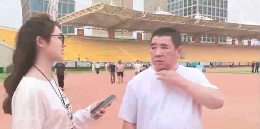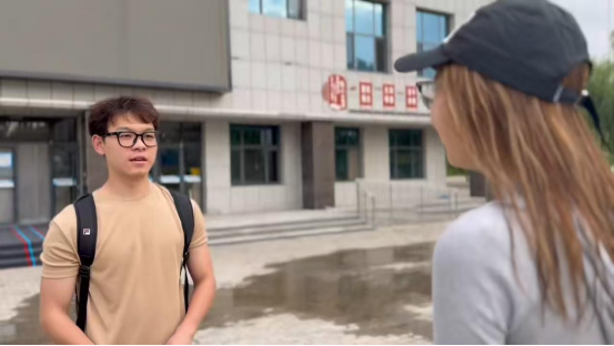 图7为队员额尔古纳在游泳馆出口了解市民对游泳馆的改进建议