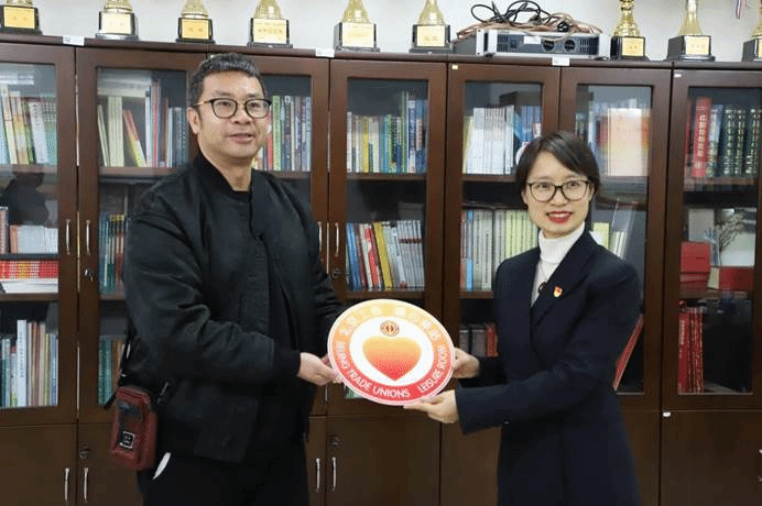 校工会副主席郑朝阳向PA视讯授牌“北京市工会暖心驿站”