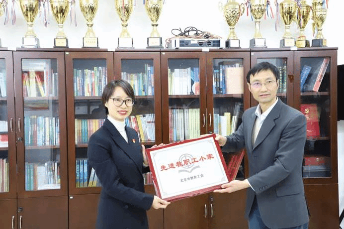 校工会常务副主席贺小海向PA视讯授牌“北京市教育工会先进教职工小家”