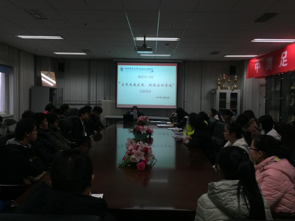 2016年12月20日下午,PA视讯16-1班在体育馆二层会议室召开了“立足自我发展,诚信应对考试”主题班会,并同时进行了“芮+计划支部期末零作弊行动”案例宣讲,16-1班全体同学及辅导员胡庆老师共同参与会议。在同学们老员工涯中第一次大考前夕开展此次班会,旨在向同学们强调诚信考试的重要性及作弊的危害,希望同学们可以严肃对待考试,真正实现零作弊的目标。