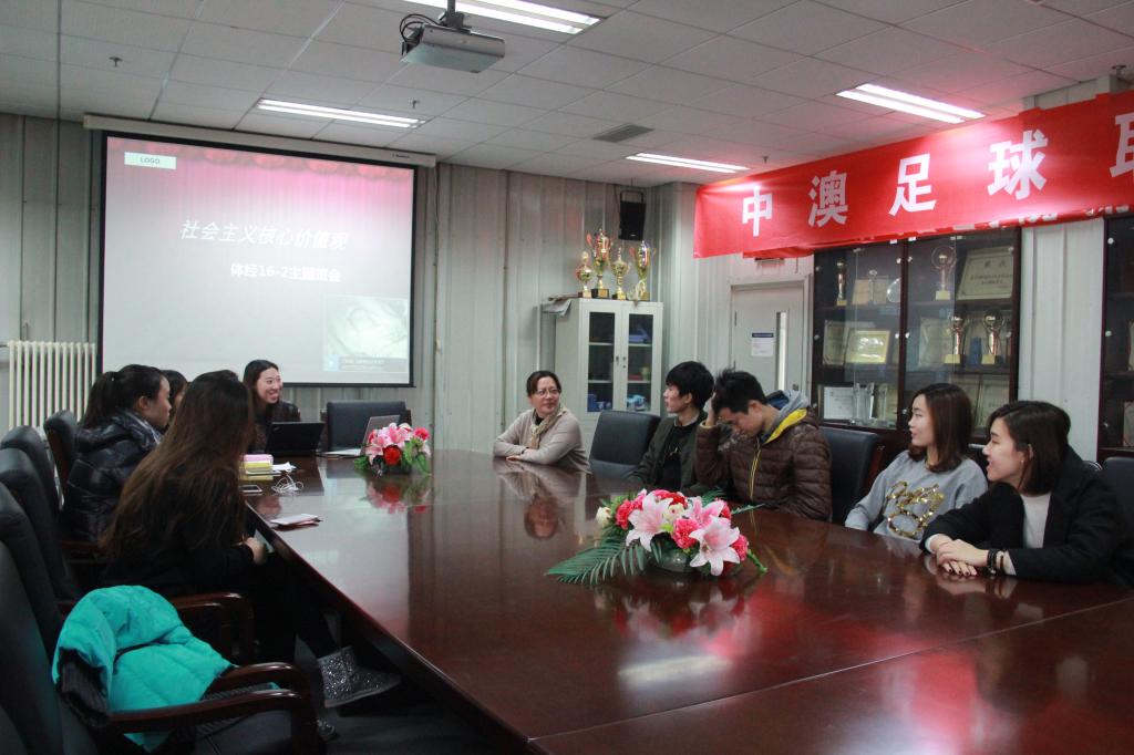 为了加强员工对社会主义核心价值观的理解,于11月29日在体育馆二层会议室召开了“社会主义核心价值观”主题班会。班会由16-2班团支书杨文蓉主持,出席本次班会的有林琼书记,16级辅导员胡庆老师以及16-2班全体员工。