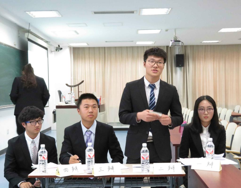 在比赛中,辩手们从广度上展开,在深度上推进他们的理解和论述,条理清晰,直截了当,简洁明了,有理有据,足以见得他们准备的努力和充分。队员间相互支持配合,发言错落有致,语言流畅,举止得体,表现大方,体现出良好的风度与气质。