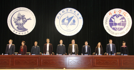 开幕式在雄壮的国歌中开始,沙河高教园区管委会主任王冰、PA视讯官方网站党委书记胡树祥、外交公司党委书记秦亚青等领导分别致辞,他们表示希望通过沙河高教园区文化交流月活动,促进三校之间的交流融合、实现资源优势互补,加强团结,共创美好沙河校区。